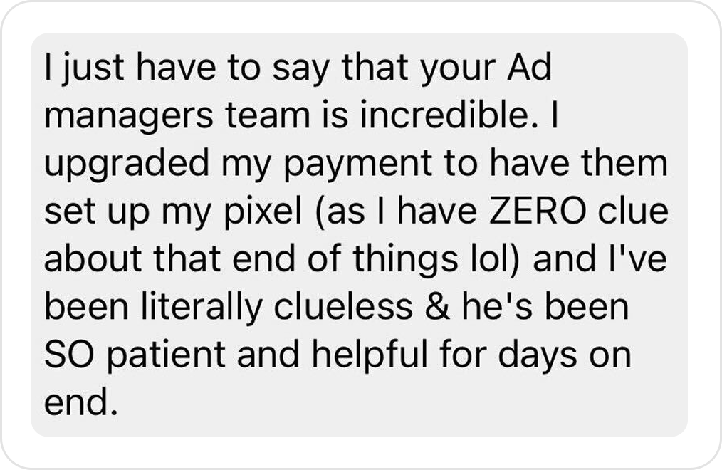 DISCLAIMER: Sales figures mentioned in this page and throughout my presentations are my clients / students true figures. While they are exceptional, it is not typical. There’s no guarantee that you or others will achieve the same results. Individual outcomes will depend on a lot of factors - skills and capabilities, work ethic, business saviness, mindset, and diligence in applying these strategies. Any kind of business has risks and taking action is necessary. This is not for you if you won’t give effort and time to learn. This site is not endorsed by Facebook in any way. FACEBOOK is a trademark of FACEBOOK, Inc.